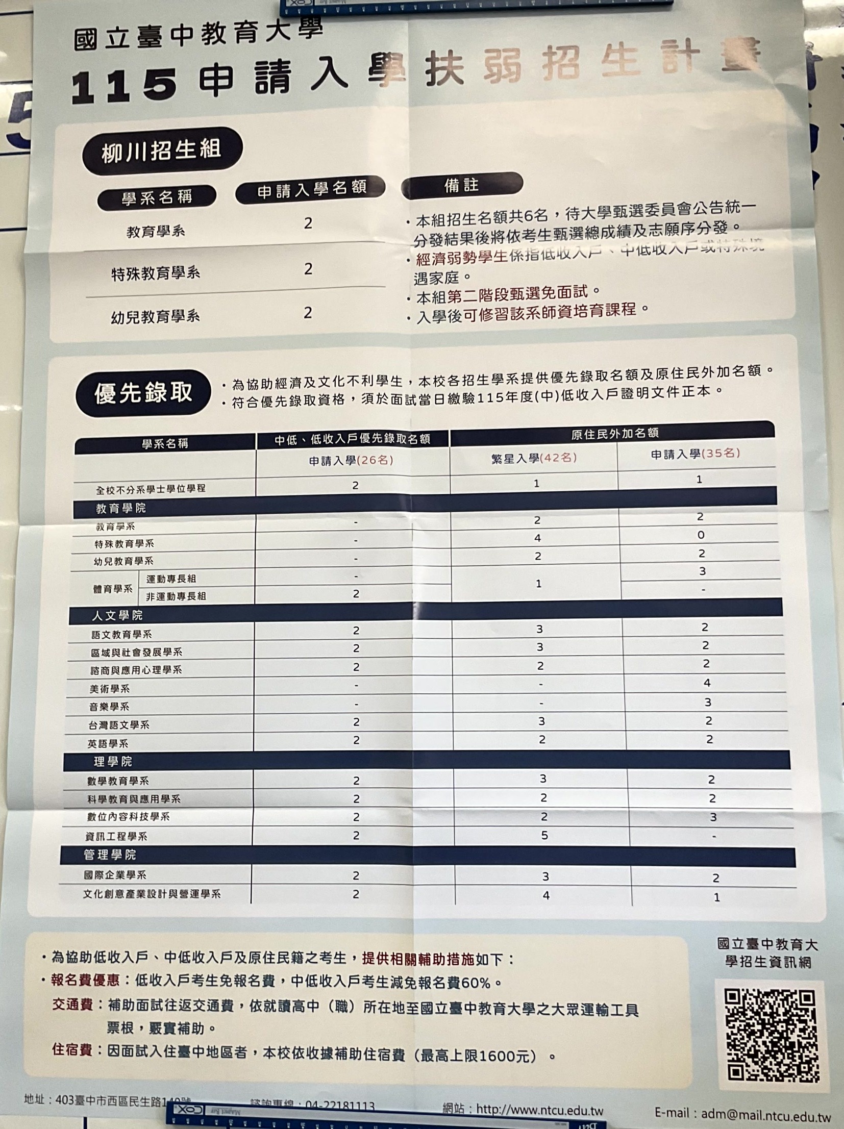 國立臺中教育大學115申請入學扶弱招生計畫 招生海報