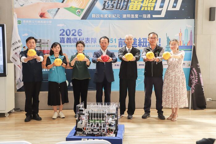 縣長翁章梁今天為代表隊進行授旗,勉勵學生全力以赴;翁章梁說,FRC是全球具指標性的高中生機器人賽事,重視機器人設計,強調溝通合作與國際互動能力,每年吸引約9萬名高中生共3600支國際隊伍投入競賽,嘉義縣代表隊將前往美國,其他國家共48支隊伍同場競技。